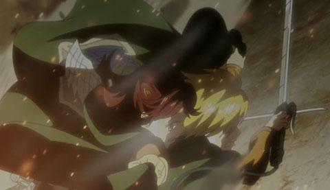 Elsewhere, a soldier has brought news to Commander Erwin of the events that took place. Erwin and a large group of soldiers head to the area. Once they arrive, an injured Hange explains where she believes Reiner and Bertolt (Fricken...however you want to spell it! Manga and subs spell it differently.) are holding up...the Titan forest.