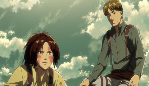 Basically, this is a tease episode. Just when you think they will reveal some important information...build up...build up...build up...aaannnddd NOTHING! Except that Reiner seems to have a dual personality. In addition, you get a glimpse of what happened to Marco (The "flashback" image of a Titan eating someone; that's poor Marco.). You can catch this episode's written material in volume 11 of the manga.