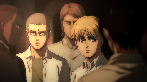 Nile reunites Falco with Gabi and Colt, and the three of them race to stop Zeke from screaming and turning Falco and the tainted soldiers into titans.