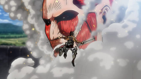 The Colossal Titan has breached the wall, taken out the cannons, and disappears mysteriously before Eren can take a swing. This leaves the Trost District vulnerable, and Titans can enter at any time. Mikasa is told she must help with the evacuation, while other members of the 104th are sent to assist the front lines.