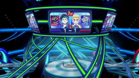 Returning to the Bey Carnival semi-finals, Joe Rurikawa managed to score a point giving each blader one point. For the next battle, Drum goes with Ace Dragon, and Joe goes with an attack plan as well. Joe thinks Lady Luck is smiling on him, but not this time. The Bound Stinger attack burst's Judgement Joker, and Drum takes the win! He is on to the grand finals.