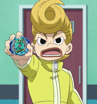 Chuck's beyblade is Judgement Joker Blitz Volcanic Zan.
