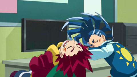Valt and Drum have heard a rumor about the Asahi bother's new beys and come to the Bombers Club to check them out. Let the battles begin! Drum vs. Hikaru ends in a win for the latter with a ring out finish.