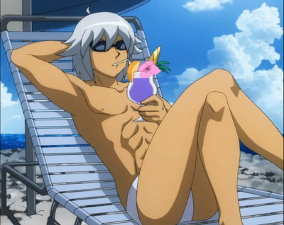 Uh ... yeah.... who knew spinning a beyblade would give you a sixpack like that! But really?...A speedo? If it gets wet, that leaves nothing to the imagination!