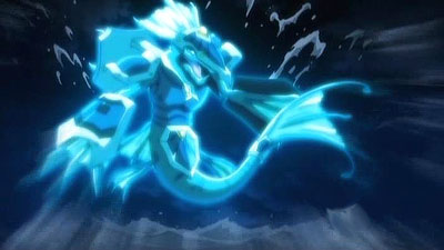 Ricky's Bahamut gets stuck in the water but Leon's Byakko uses a path of rocks to leap over it to safety. This allows Leon's BeyRaiderz to grab the final token and claim victory. The mythic beast Byakko appears and roars his approval. Ricky and Leon vow to battle again soon. Meanwhile an unseen figure watches from the shadows.