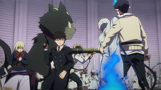 Yukio, Rin and the rest of the Exwires are all together and fighting off Gedoin's zombies. At the same time, Izumo has become host to the Nine Tails! Thankfully, Izumo's mother saves her, but at the cost of her own life.