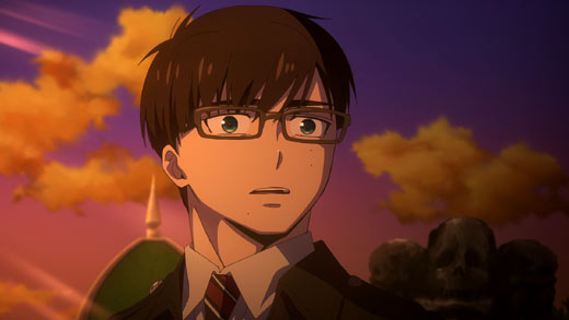 Picking up from last episode, Shima says he knows Yukio talked to Lucifer. Lucifer sent a message, "If you want to be saved, my door is always open." Yukio firmly says it is not needed.