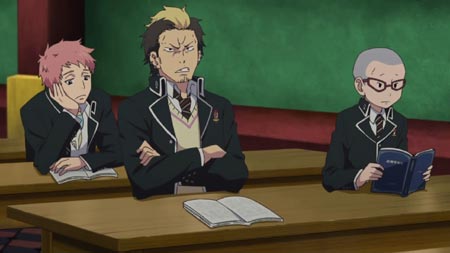 Rin learns from Shima and Konekomaru that Suguro grew up in a cursed temple, and his purpose for attending this school is to become an exorcist and defeat Satan. Rin is surprised to learn that they both share the same ambition.