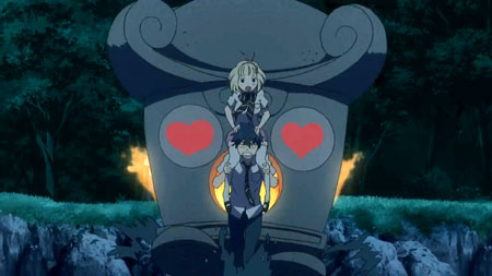 Amaimon (King of Earth) shows up. Shuru takes care of him with the barrier, but just in case, she returns the coma sword to Rin.