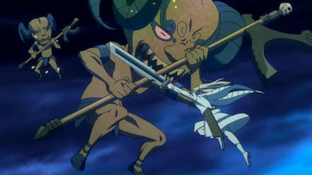 It's the climatic end to the anime series, and all exorcists are working together to shut down the Gehenna Gate. It's difficult as demons keep pouring through the opening.