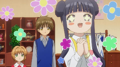 Tomoyo invites Syaoran to take measures for a costume she is designing for him. Afterwards, Sakura and Tomoyo are invited by Akiho to pay a visit on the next Sunday to her new house, which by coincidence is the same mansion where Eriol lived during his stay in Tomoeda. Sakura then invites Syaoran to come with them, but he tells her that he has another appointment, and they agree to have a date in the following Sunday.