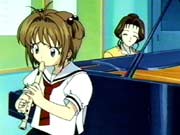 After dinner, Mr. Avalon asks Tori and Sakura about their tests. Tori seems to have done perfectly and Sakura finds that frustrating. Then she practices the recorder in her room while Kero plays Zylon warriors. He makes sure he saves this time, and Sakura is glad that she can finally play the song without mistakes. At the clock tower, an hourglass is turned upside down and the clock turns backwards.