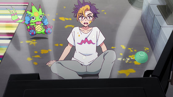 Kyo has been keeping rookie digimon safely away from the Ministry in Norinso Shelter. He has been keeping them alive by feeding them some of his e-Pulse, but it takes a toll on him.