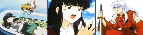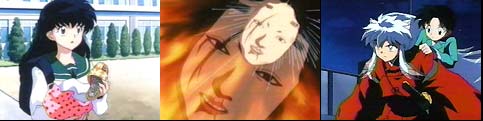 Kagome arrives home just in time to catch Grandpa giving Hojo more fictitious excuses. However, today she does attend school. Afterwards she is enjoying ice cream with her friends when she notices a young girl in an overcoat cause a firecracker incident. Kagome confronts the child, but the indignant little girl disappears. Funny thing is...Kagome's friends couldn't see the youngster. Back in the Feudal Era, InuYasha is waxing the Tetsusaiga when a flute is heard. Myouga explains that it's the Soul Piper, a normally friendly demon that plays with the souls of dead children until they pass on. Later, Kagome takes Sota to see his friend Satoru who has been in a coma for 6 months...ever since his apartment caught fire killing his young sister, Mayu. Suddenly Kagome sees that same little girl cause Satoru's IV to shatter. While heading home after their hospital visit, Sota tells Kagome weird things like that keep happening. Even Satoru's old apartment hasn't been touched because strange things occurred when the fire department tried to clean it up. Just then, Mayu confronts Kagome outside the gutted apartment after causing a large pot to crash to the ground scaring Sota. The little girl is intent on killing her brother, because she felt their mother loved him more. She warned Kagome not to interfere or she would be next. Overhead...the Soul Piper's eyes are opening slowly. When Kagome returns to the Feudal Era, she discusses Mayu with Myouga and the others. He explained the if the child's soul becomes evil by holding on to feelings of hate and revenge, then the Soul Piper takes the child to hell. This will occur when the demon's eyes are completely open. Kagome is determined to help the girl, but InuYasha isn't so sure about this. Back at the hospital Satoru's mother is stitching a pretty yukata (Japanese dress). Kagome runs into the women outside the hospital as she is leaving. Kagome learns that Mayu was upset with her mother for missing her school play to care for an ill Satoru. Mayu had run off. When the women returned from a quick run to the store and found the apartment in flames, she pulled Satoru to safety not knowing Mayu was inside as well. All of a sudden, glass shattered from the window of Satoru's hospital room. When Mayu's mother approached the room, the girl uses an energy force that sends the women flying into the wall. Then Mayu pushes her brother's bed out the window. Luckily, InuYasha arrived in time to save the boy. Uh Oh....the Soul Piper's eyes have opened wide! In an effort to save Mayu from Hell, InuYasha and Kagome race to the girl's apartment...the site where she had died. Kagome reaches for Mayu, who is being dragged down to Satan's world. InuYasha is unable to help and fears Kagome may be pulled into Hell with the child. Kagome convinces Mayu to remember the good times and make amends. Mayu cries and admits that she really loves her mother....and with that, the Soul Piper removes his grip. A few days later Mayu appears outside Kagome's balcony. She is wearing the beautiful yukata that her mother made for her. She thanks Kagome and returns to Heaven....where her spirit belongs. ___________________________________ NOTE: This was such a bittersweet episode. I get choked up every time I see it. The Mystery of The New Moon and The Black Haired InuYasha