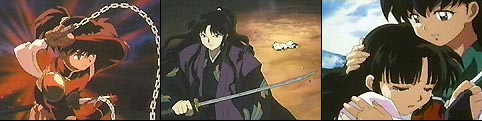 The next morning a fatally wounded villager approaches the girls. InuYasha comes running...he smells a lot of blood. They find a village where the inhabitants were massacred. Sango discovers traps have been placed everywhere. InuYasha weeds out a young boy, causing Sango to stare in shock and disbelief. Kohaku was responsible for all this devastation? The boy turns and runs through the forest. Sango has Kiara transform, and they give chase. He runs through a barrier, and Sango follows.