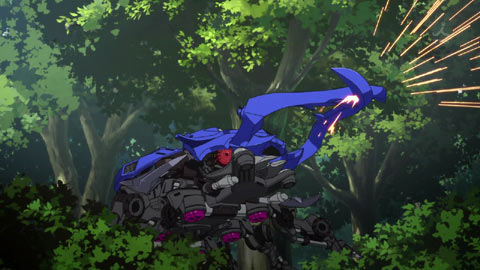Arashi slips out of the safe zone of the village and ventures into the danger zone of the woods. He attempts to catch a stag beetle-type zoid (Kuwaga), but the large creature outsmarts him. Bacon saves the boy before he is crushed.