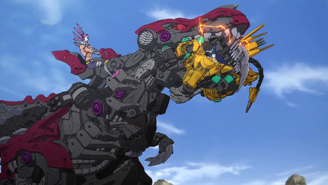 Eventually, Arashi pushes Drake off a cliff. When he turns his attention to the others, Onigiri with his Gannontoise knocks Arashi off the Liger. Arashi returns to his senses, but he does not recall anything that just happened.