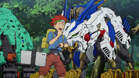 A young awkward boy (Hijike) runs up to Team Freedom and admires their Zoids.