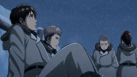 NOTE: This episode is from volume 10 of the manga. The beginning of the Winter scene where Eren and the others are concerned for Krista was not part of the manga...only the interraction between Krista and Ymir. At least we were able to see Marco alive!