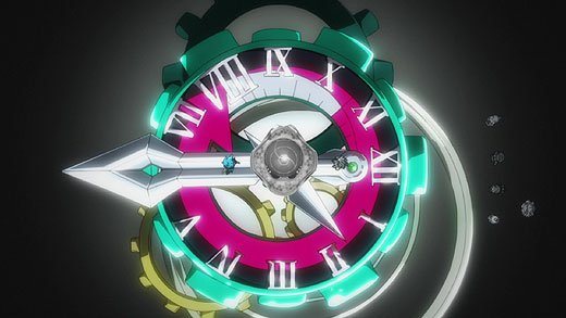 Eight's Bey, "Clock Mirage," has a fundamentally different design concept from other Stamina Type Beys, and is equipped with futuristic technology that Eight claims can even stop time.