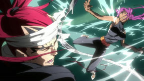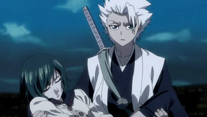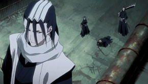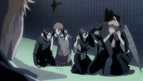 Uryu tries to protect Nozomi, but he, too, is defeated by Kageroza Inaba. Meanwhile, Ichigo and Rukia are able to escape to the world of the living. Just when things look really bad, the original captains and lieutenants arrive to help out!