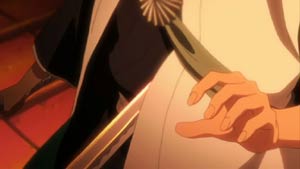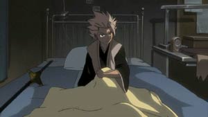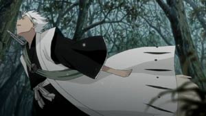 Meanwhile in the Soul Society, someone attacks Shunsui Kyoraku, the captain of Squad Eight. The evidence suggests that his wounds were caused by Captain Hitsugaya's zanpakuto.