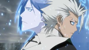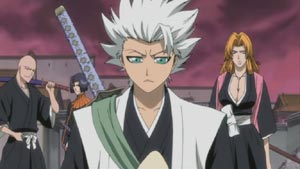 With his squad and everyone's backing, Toshiro again wears his Captain's robe. He, along with the Soul Society and Ichigo, begin to battle the transformed Kusaka and a magnitude of attacking hollows.