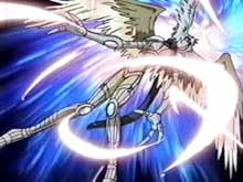 Suddenly, Sakkakumon reappears. He begins to rearrange himself and attack the chosen ones with all their own assaults. Seems he learned all of their special powers while they were battling in his orbs. The children evolve to their human spirits. Sadly, everything they try is reflected back at them in greater force....even evolving to their beast spirits doesn't help them.