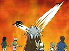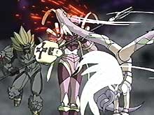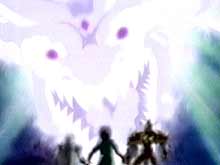When the Royal Knights absorb more code, the children evolve and a battle ensues. Takuya and Koji concentrate their attacks on Dynasmon, but their attacks are too weak. Dynasmon's "Dragon's Roar" attack pierces the armor of our two heroes. At the same time the others have found it necessary to beast spirit evolve to fight Crusadermon, but she soon cuts them down. They found it's time to give their spirits to Takuya and Koji.