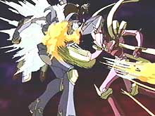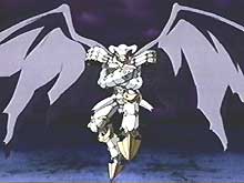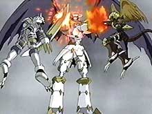 Emerging from the rubble of still more destroyed land comes Dynasmon (the passionate warrior) and Crusadermon (the indifferent warrior)....also known as the Royal Knights. Why would the Royal Knights, known as defenders of right, align themselves with Lucemon? They believe it is Lucemon who will restore order and warns everyone not to interfere.