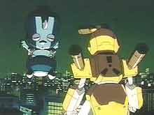 ** Medabots Season III** presented by AnimeAdmiresMetabee's Last StandEpisode SummaryThe Select Corp. attempt an attack on Dr. Meda-Evil's weapon of mass destruction (Hmmm, where have I heard that term before?), but they are no match for Babby Blue. Ikki, Phantom Renegade and the others try and fail as well. Dr. Aki initiates a tactical retreat and instructs Baton to prepare Plan G. Dr. Aki knew Dr. Meda-Evil would try to take over the world again and prepared by creating a giant Metabee. The huge Medabot draws its power from rare medals and will receive commands from a large Medawatch that fits around Ikki's waist. Metabee is transported into its main cockpit. Unfortunately, Metabee doesn't have enough power to move it, and Babby Blue knocks him over. Brass, Sumilidon, Peppercat, and the other Medabots want to help. "More Medabots...More Power!" The bots are transported into the emergency cockpits in the left and right arms as well as the chest. The interior hookups will attach to their back hatches, and their energy is sent to Metabee. It works! Mr. Referee regains control and declares a robattle. Metabee starts with his laser cannons, then his fire fist, but Babby Blue has a powerful force field. Finally, seeker missiles are used, but the huge giggling baby bot remains unscratched. When Dr. Meda-Evil initiates a Baby's Kiss attack, our giant Metabee is left with damage to both legs. Then a Miracle happens. Everyone that has ever robattled Metabee shows up to lend a hand. The power of their friendship and hope allowed Metabee to awaken the dormant power in all of the cloned medals. All of their power helped Metabee to break through Babby Blue's force field. Sadly, Babby Blue is still able to damage all of Metabee's weapons. Metabee boldly states he still has his fighting spirit. In a selfless act, he ejects all of the Medabots from their cockpits, and takes down Babby Blue in a Kamikaze-type attack. Ikki is in tears over the loss of his best friend. Dr. Meda-Evil threatens to build again when Brandon (Remember him popping in and out of different episodes?) appears and tells him to admit defeat. Shortly, a space ship lowers and Dr. Hushi appears. The days of Medabots consumed by robattling are over. Dr. Meda-Evil's cat sheds its goggles and walks off meowing. Surprisingly enough, the cat was the descendant of the medal orions. Dr. Meda-Evil finally agrees to accompany Dr. Hushi. Gorgeous Brandon transforms to an alien (What th..?) and escorts them away, but not before returning Metabee to Ikki. Seaslug objects when the rest of the Rubberobos quit to pursue new lives. Miss Caviar in a, "If you can't beat em, join em!" attitude sheds her Space Medafighter X attire for a rubber suit. Seaslug gives in, and they begin a new life together. As everyone views the damage Dr. Meda-Evil has left, Victor approaches Ikki. He says he will robattle Ikki again, but this time with honor and dignity. Henry says, "Why not now?" Victor states that although he recovered Warbandit's medal, he has no tin pet. Henry generously gives him one from the convenience store. LET THE MEDA-GAMES BEGIN! Quotes I Just had to Mention "We could use an extra hand." (Ikki after giant Metabee uses his fire fist)"We don't need one....reduce, reuse, recycle...that goes for Medabots, too!" (Dr. Aki) "Metabee is environmentally friendly?" (Erika) "Please don't say he's made from recycled cans." (Ikki) "Oh Mr. Seaslug you won't regret it. You and I can open a super villain consulting firm or maybe a rubber clothing store." (Miss Caviar) "Very well my Starfish...then let this be our engagement ring!" (Seaslug) "Oh...yes...yes...!" (Miss Caviar) Screen Shots