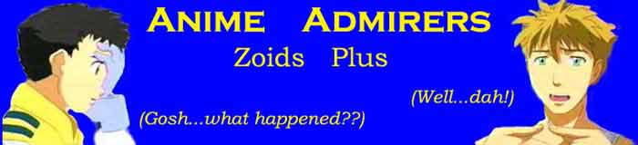 | How about a little update ^_^. | | Posted on Wednesday, August 27, 2003 | Surprise...surprise...Episode summary (thanks to Jeannette) and a few additional screen shots have been added for Episode 2, "New Partner vs Naomi and the Red Comet. Fans of Zoids/0 should be aware that it is currently airing on Cartoon Network on Saturdays at 8:00pm Eastern. On September 6th look for a new time of 10:30pm on Saturdays. Of course, we all know that the new "Zoids Fuzors" will be hitting the airwaves soon as well!!. Again I'll remind you that AnimeAdmirers main site is constantly adding new fics. Because of the number of submissions I receive, be aware that it could take up to 3 weeks before a fic appears on the site. Thanks for your patience. | | Wow...it's been a While. | | Posted on Tuesday, June 24, 2003 | | Because Cartoon Network hasn't been airing any Zoids series, things have been pretty quiet. I'm positive things will pick up again in the fall/winter when a new series is (unofficially) expected. For today enjoy some new artwork in the Fanwork area. Also, don't forget AnimeAdmirers main site is constantly adding new fics. Happy Summer!!! | | Zoids NCO Returns to Cartoon Network. | | Posted on Sunday, November 17, 2002 | | I've posted this on the main site, but some of you may not have seen. Zoids NCO returns to CN tomorrow, Monday, November 18th, airing at 3:00 pm Eastern time. I see all the Bit and Brad fans are dancing right now. Guess it's time to resume some updating to this site. Cheers all! | | Gif Changes and other requests. | | Posted on Thursday, September 19, 2002 | | First of all: There is no longer any right click protection on my gifs. With the start of school, I've been having a difficult time keeping up with gif requests. I'm going to "believe in" everyone that you are honest enough to credit my site if you use any gifs. I've added a roaring Shadowfox gif, which I've had done for a while but never posted. Next on the Agenda: Please don't ask to use any of my written content. I spend tons of time working on summaries etc., and everyone knows that there is no need to visit this site if they read the same thing elsewhere. Right! Ok, Now I'm going to be a little rude...Sorry, but I don't work my tail off just so some lazy webmaster can take it. I take pride in the fact that I'm NOT a copycat site. Well I've done enough ranting...laterz. | Archived News | Disclaimer Please be advised that I am in no way associated with the owners and operators of any of the anime contained within my site. I am just a huge fan. No copyright infringement is ever intended. Therefore, email me if there is a problem, and I will rectify it immediately. Thank you. | |