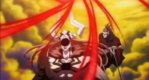 Yuzu's imminent death and Kokuto's betrayal send Ichigo into uncontrolled, hollowfied form. His Cero power nearly breaks the chains of Hell, but Renji uses Kido to send Ichigo back.