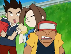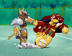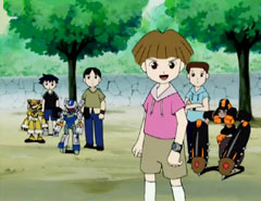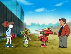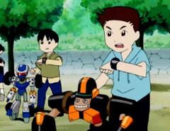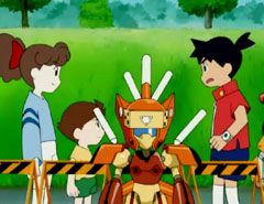 ** Medabots Season III** presented by AnimeAdmiresI, KilobotEpisode SummaryOn a bridge above the river bank, Suzie watches a robattle involving young Tak. She notices Samantha watching on the sidelines, and sees the adoration she is getting from Spike and Sloan. Suzie is envious and devises a plan to get someone to cater to her every wish. After striking out with her 1st choices, Suzie sets her sites on Tak. His disillusion with his Medabot, Komandog (especially after his loss to Brownbison), makes him an easy target. She secretly follows him to Ms. Nae's. Ms. Nae says that every Medabot has the potential to win. Ikki agrees saying Komandog just needs more practice. Tak disagrees insisting that Metabee wins because of his strength alone. Then he angrily throws his medawatch at Ikki and tells him to keep Komandog. Tak tearfully runs off saying he'll get a new medabot. All the while, Suzy is watches. Suzy confronts Tak at the park. She promises to get him a winning Kilobot if he will serve her. He agrees, and she gives him a Unitrix. Suzy shows Tak that Kilobot fighters can do anything since they don't play by the rules. The only problem is that they don't communicate like medabots do. After witnessing several battles, Ginkai approaches Tak. He tries to reason with the boy, but winning is all that he cares about. Tak decides to show Ikki and Metabee that strength is everything, but Suzy makes him paint her nails first. Later, Tak calls Ikki and sets up a robattle. During the battle, Ikki asks Metabee not to use his weapons. He wants to prove that you can win without using them. Metabee goes to action mode, and Unitrix can't hit him. When Unitrix gets a lucky shot off, Metabee goes back to normal mode. Ikki's strategies are working, and must continue to transport ammo. Finally, Metabee surfs down a rock pile landing on Unitrix and defeating him. While Tak has been battling, Suzy called in Ambiguous 2 to turn the tide of battle, but Komandog catches her in the act. She commands Ambiguous2 to destroy all dogs. Komandog hits the ground hard, but Ginkai and Arc-Dash come to the rescue. Suzy gives up and heads to the mall. Ikki and Metabee proved that strategy, and not strength, can will a robattle. Then Ginkai explains to Tak that Suzy tried to interfere. Tak finally realized that he was used and makes up with Komandog. He returns Unitrix to Suzy. Screen Shots