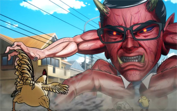 One thing's for sure... it certainly is unconventional. Chickens fighting demons? Well if it's to save the World, I guess I can do without that plate of Kentucky Fried Chicken for a while. ^_^'