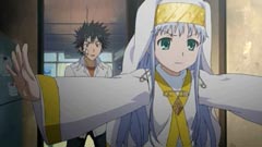 To Aru Majutsu no IndexALTERNATE NAME: A Certain Magical Index Are you craving magic and mayhem? The 2008 Fall Season whips up a good dose of it in To Aru Majutsu no Index. Based on the light novels written by Kazuma Kamachi, this anime adaptation may well be considered one of the best of the Fall Season. In a secret city not far from Tokyo, students with psychic and/or magical powers attend schools created to evaluate or enhance their abilities. One such student is Touma Kamijo, who is gifted with the unusual power called Imagine Breaker. This power negates all magic, psychic, or divine powers. Unfortunately, his power also negates any kind of luck he may have causing him nothing but constant misfortune. One morning, he finds a young Nun from the Church of Necessary Evil hanging from his balcony. Seems she is being pursued, because her brain has been implanted with the 103,000 magical texts. Many of those texts are forbidden, and the church will do anything to prevent anyone from getting their hands on them. Touma takes it upon himself to help this young Nun and thus, his life changes forever.