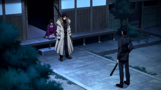 Megumi is left to watch over the dojo while everyone goes after Kenshin in Kyoto. Imagine her shock to discover Aoshi from the Oniwaban group has broken in looking for Kenshin. When Saitou shows up and tells Aoshi where to find Kenshin, Megumi is not pleased. Meanwhile, one of Shishio's minions is watching.