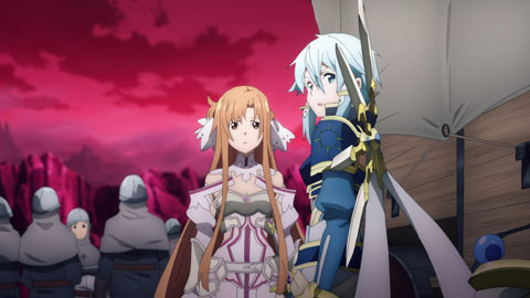 At the ruins, Vassago has returned in a new avatar, stalking Asuna from afar as she fights in a fierce battle with the American players. Just as the situation seems dire, a bright light appears in the sky. The new arrival is Klein, in his ALO avatar. More allies begin arriving and just in time!