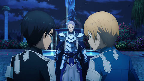 Picking up from last episode, Eugeo and Kirito are forced to fight the Integrity Knight, Eldrie. Kirito and Eugeo are doing well until Eldrie uses his Divine Weapon. Eugeo finally remembers who Eldrie really is.