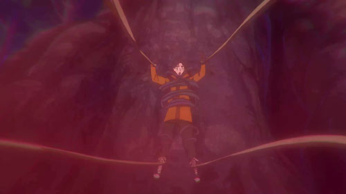 After pitching their tent, Hiro takes Gammamon fishing. The small digimon is happy and excited about everything. Hiro recalls his conversation with Ruli and Kiyoshiro discussing evolutions. They did not want to consider Gulusgammamon for fear of jinxing them. It makes Hiro wonder as well. Suddenly, they hear a scream coming from the forest. They go to investigate.